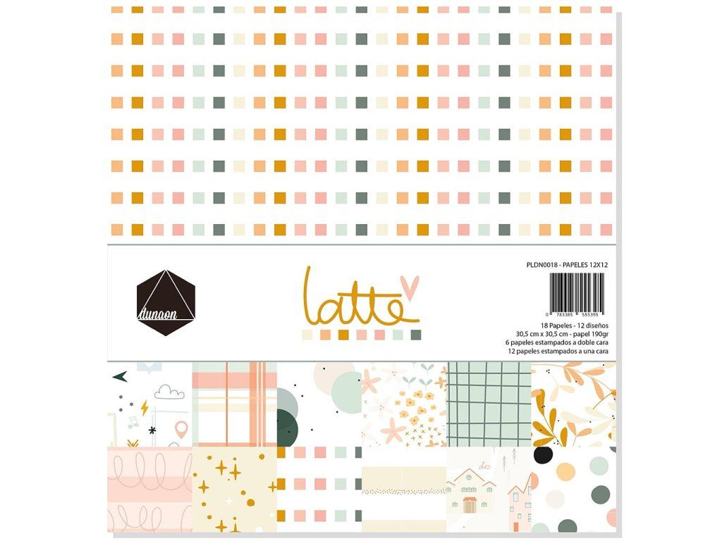 Sada papírů na scrapbooking z kreativní sady Latte od španělské značky Dunaon. Skvělé na vyrábění fotoalb, přáníček a další tvoření z papíru.