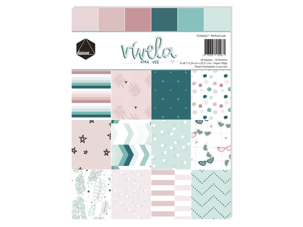 Sada papírů na scrapbooking z kreativní sady Vívela Otra Vez od španělské značky Dunaon.