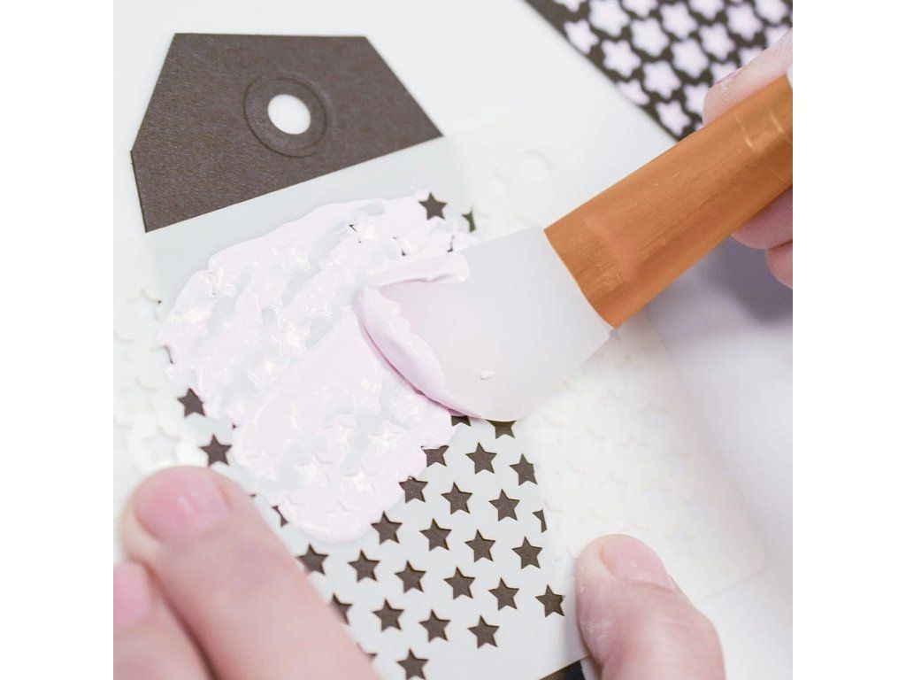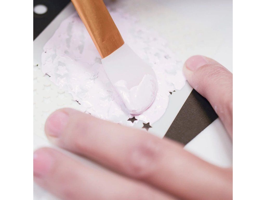 Silikonové stěrky jsou ideální pro různé mixed media projekty, při kterých se pracuje s texturovací pastou, lepidlem, epoxidovou pryskyřicí, barvami nebo maskovací kapalinou. Pomocí ohebných stěrek můžeš nanášet tenké vrstvy barvy nebo naopak silné vrstvy texturovací pasty a vytvářet výraznou strukturu, například pomocí šablon. Díky silikonovému povrchu se každé médium snadno a rovnoměrně roztírá.