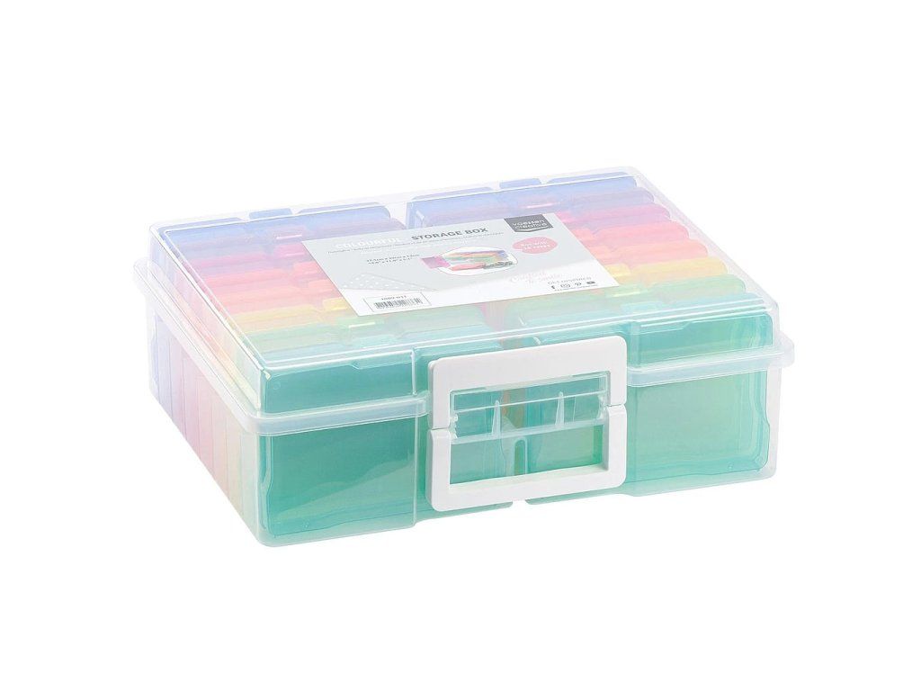Vysoce kvalitní úložný kontejner je dodáván s 16 menšími průhlednými pouzdry, takže snadno zjistíte, které zásoby jsou uvnitř. Skladujte krabice na sebe pro úsporu místa. Krabičky mají zacvakávací pojistiku pro zajištění obsahu. Udržujte svou sbírku věcí na scrapbooking snadno přístupnou, úhlednou a v perfektním stavu tím, že je uložíte do těchto praktických úložných boxů.