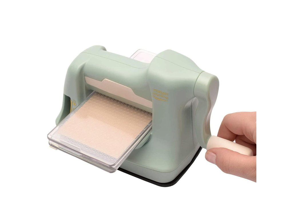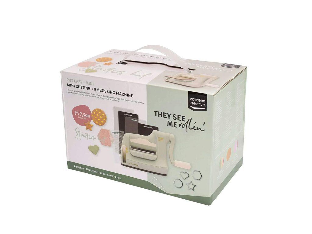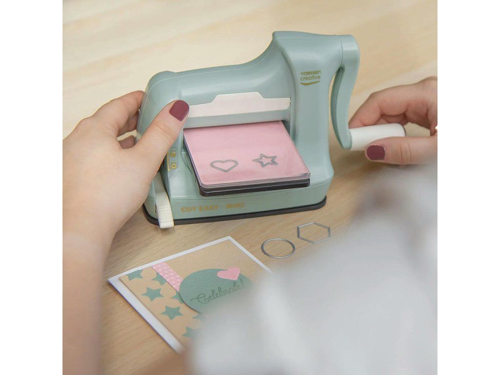 Vaessen Creative Cut Easy Mini bez námahy prořeže papír nebo tenkou pěnu a embosuje. Šířka plochy je 7,5 cm nebo 3 palce. Jeho výhodou je malá velikost a skladnost, takže se vejde i do té nejmenší scrapbookové pracovny.