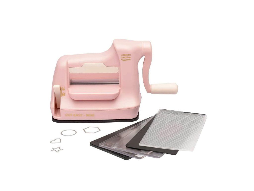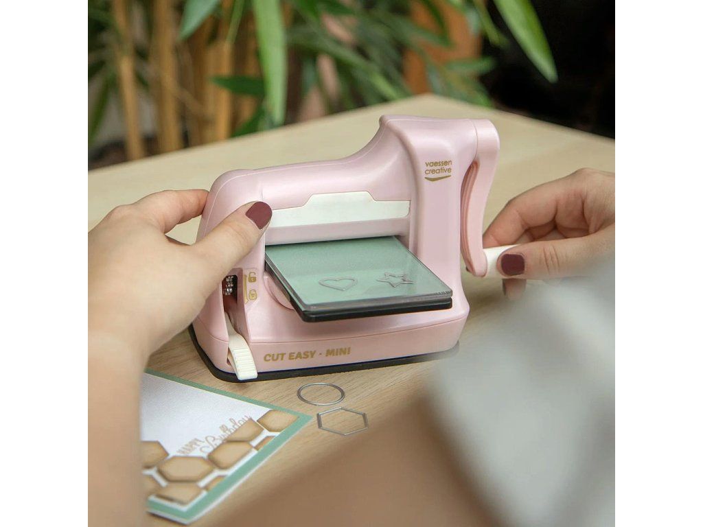 Vaessen Creative Cut Easy Mini bez námahy prořeže papír nebo tenkou pěnu a embosuje. Šířka plochy je 7,5 cm nebo 3 palce. Jeho výhodou je malá velikost a skladnost, takže se vejde i do té nejmenší scrapbookové pracovny.
