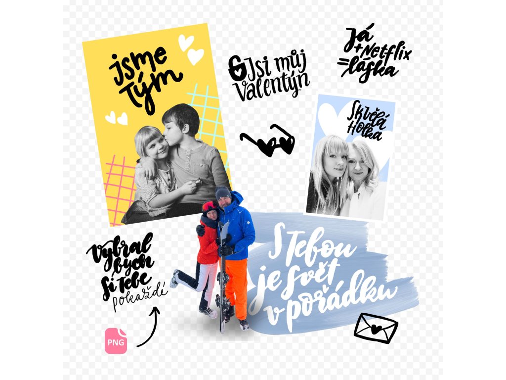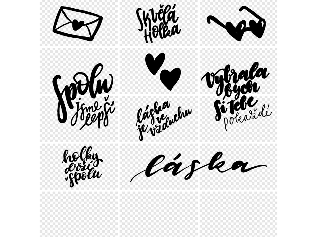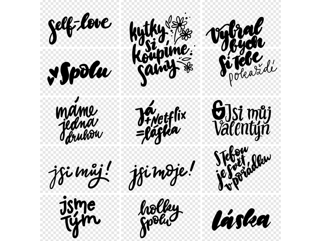 České digitální nápisy s tematikou lásky a přátelství. Nápisy můžeš využít k ozvláštění fotek, fotoalba nebo fotoknihy a nebo přáníčka - ta papírová, ale i ta, která posíláš online. Nápisy jsou snadno použitelné v běžně dostupných grafických editorech jako je například Canva.