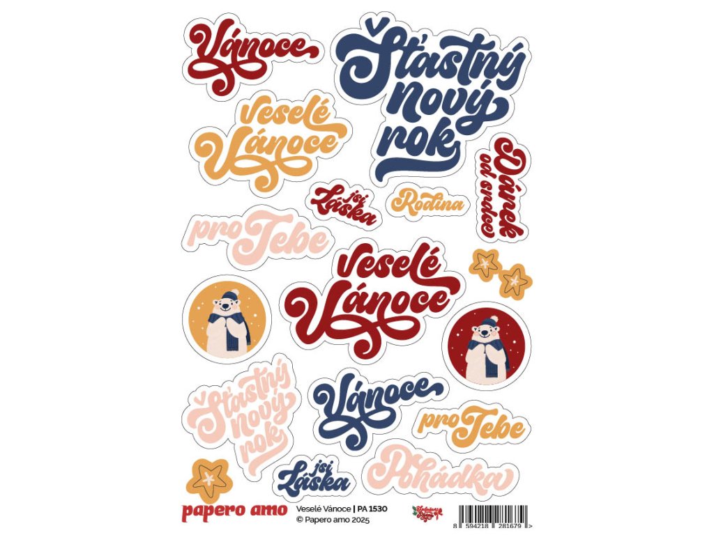 České samolepky na tvoření z vánoční kreativní sady Splněná přání. Ideální na zdobení handmade vánočních přáníček, diářů, fotoalb a další vánoční kreativní tvoření.