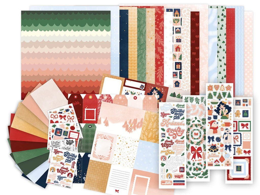Velká vánoční kreativní sada Splněná přání. Ideální na výrobu vánočních fotoalb, minialb, přáníček, krabiček, visaček, dekorací a jiné vánoční tvoření. V kolekci najdeš vánoční vzory a motivy a především české texty a nápisy.