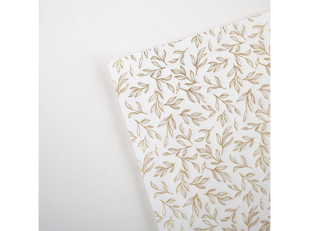 VELLUMOVÁ čtvrtka se zlatým motivem lístků z kreativní sady Edelweiss španělské značky Lora Bailora. Ideální pro scrapbooking, cardmaking, Project life a další tvoření z papíru.