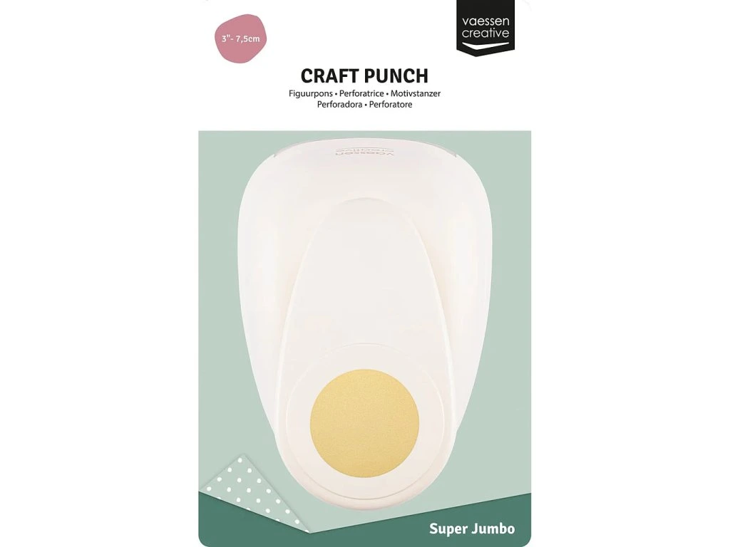 Raznice SUPER JUMBO vysekne kolečko o průměru 77 mm. Skvělá pomůcka na tvoření z papíru - zvládne vyseknout papír až do gramáže 250 g/m2. Ideální na výrobu přáníček, fotoalb, visaček apod.